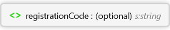 <s:element name="registrationCode" type="s:string" minOccurs="0" maxOccurs="1" xmlns:s="http://www.w3.org/2001/XMLSchema" />