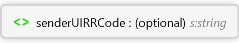 <s:element name="senderUIRRCode" type="s:string" minOccurs="0" maxOccurs="1" xmlns:s="http://www.w3.org/2001/XMLSchema" />