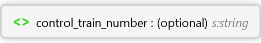 <s:element name="control_train_number" type="s:string" minOccurs="0" maxOccurs="1" xmlns:s="http://www.w3.org/2001/XMLSchema" />